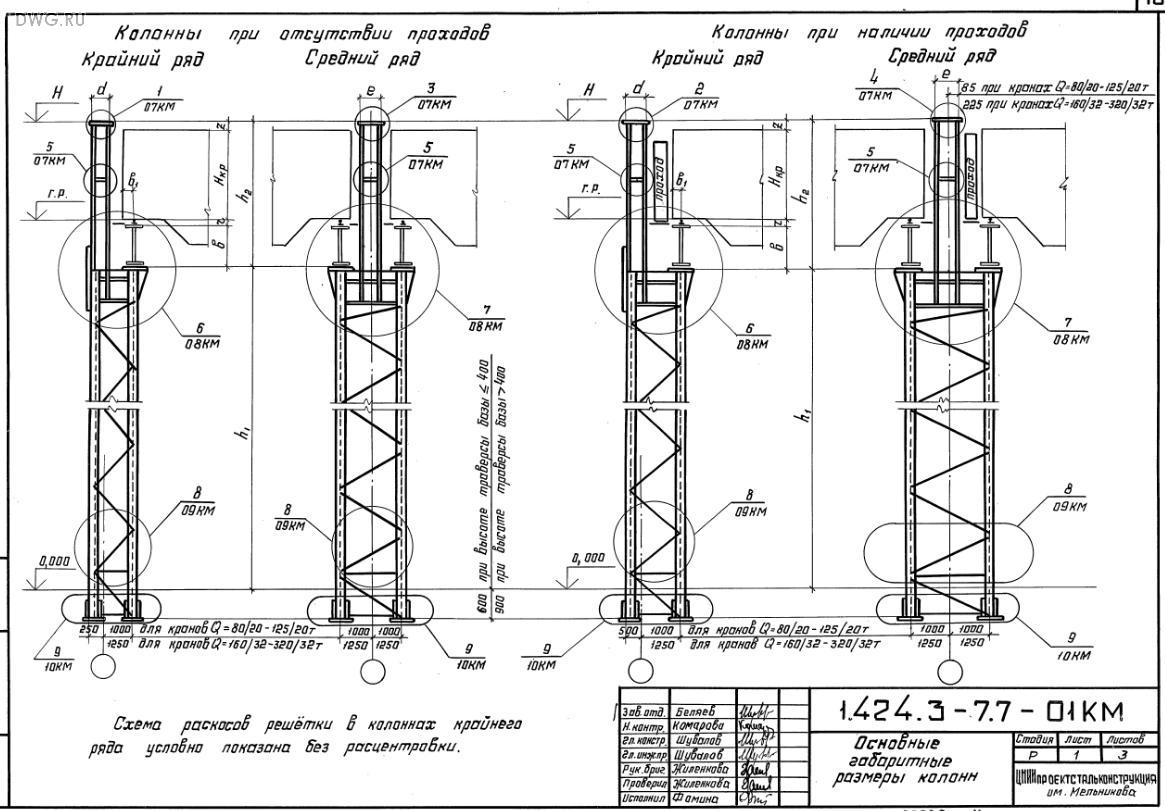 - для цехов высотой более 18 м используются колонны раздельного типа.